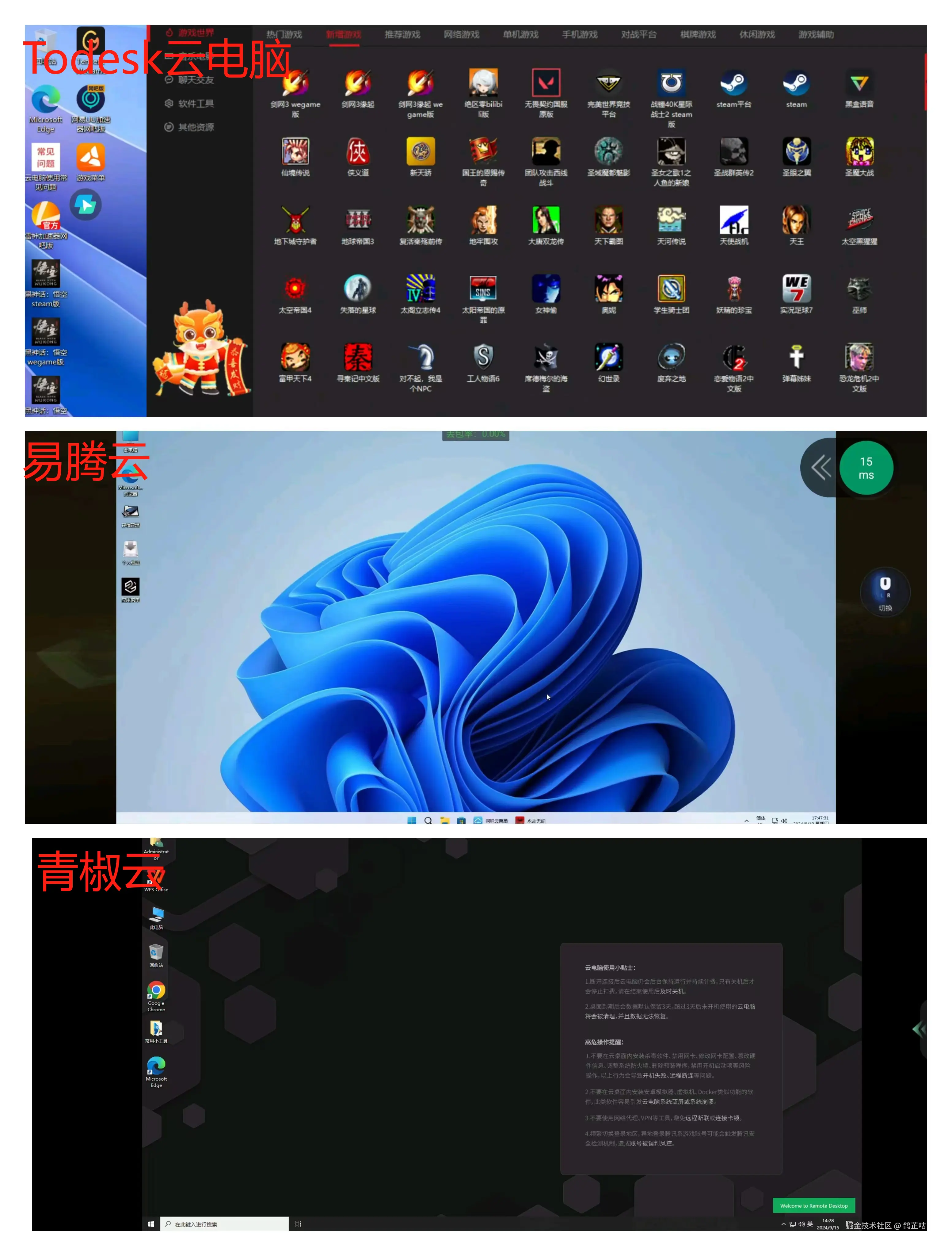 简单总结三款 云电脑 :
