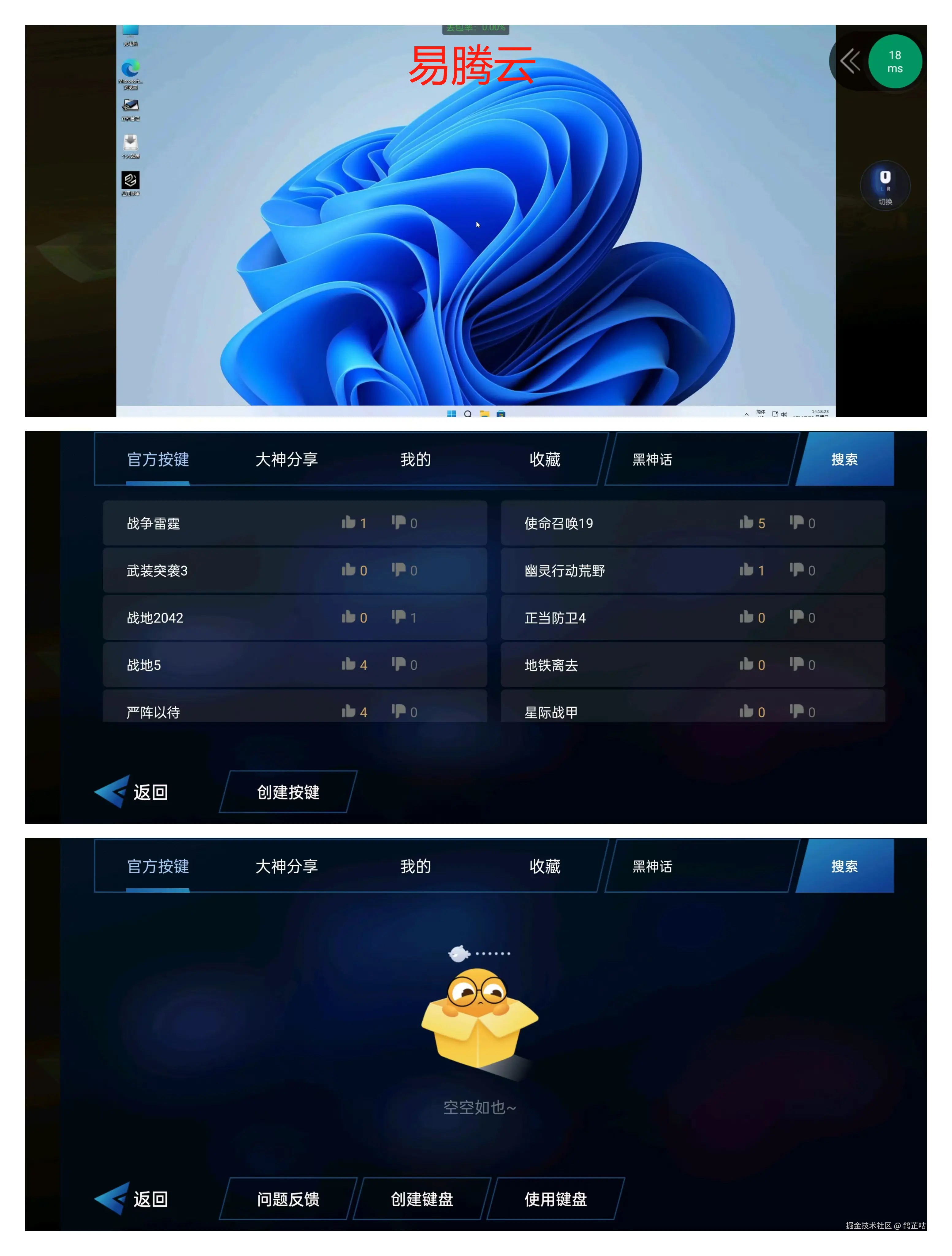 - 易腾云:在移动端的按键方面调的还可以,不过基本都是很久以前的游戏了。目前的新款游戏还是没适配上按键更新上有待加强。