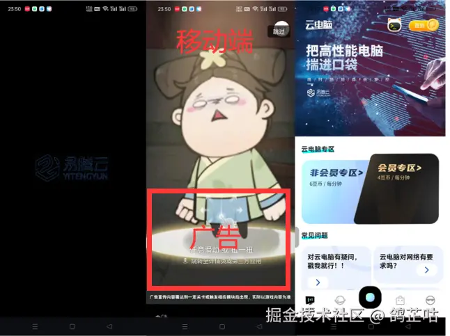 易腾云在手机界面安装体验时还给我蹦出了广告界面,这实在是体验很不好,一不小心就容易点到了