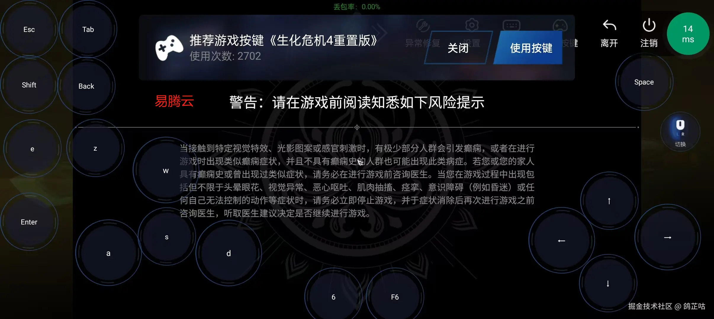实测我打开永劫无间却给我自动适配一个生化危机的按键,这点易腾云做的还是不太行。