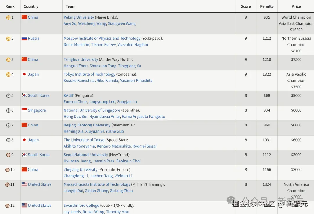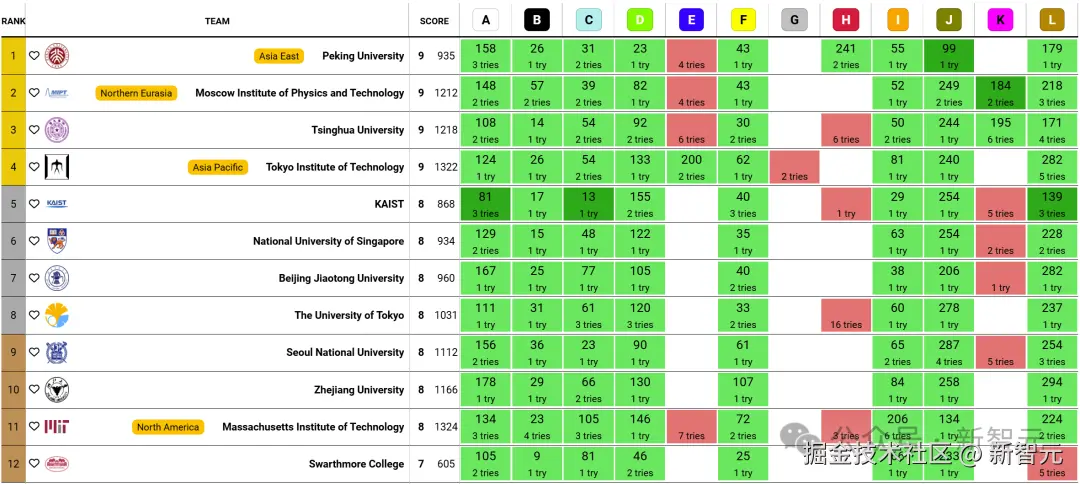 来自清华大学的团队,则取得了第三名的好成绩。同样是做出了 9 道题,获得金牌。