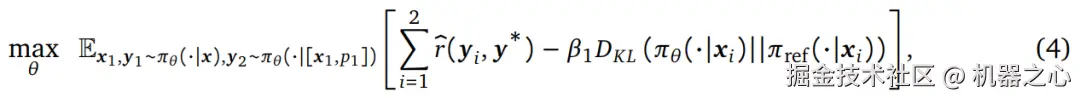 作者微调基础模型,以便在第二次尝试时产生高奖励修正,同时通过使用 KL 散度将第一次尝试的响应分布限制为尽可能接近基础模型的响应分布,从而强制模型不改变其第一次尝试的响应。虽然这看起来不是最优的 —— 但第一次尝试的响应错误较少,可以纠正为更好的第二次尝试响应。优化的目标可以表示为: