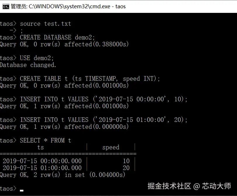 # taos> source <filename>;taos> source test.txt;