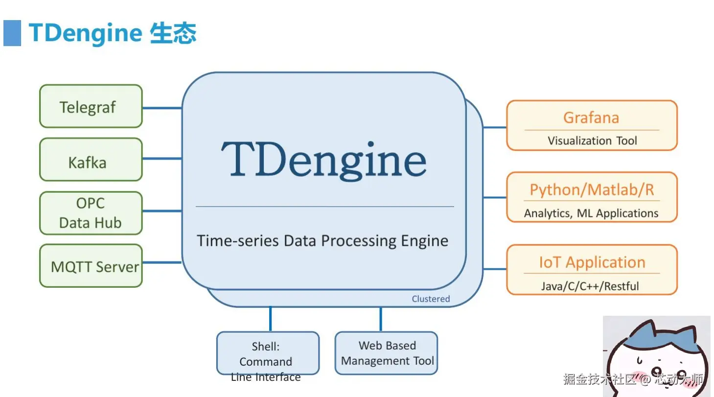 TDengine 核心是一款高性能、集群开源、云原生的时序数据库(Time Series Database,TSDB),专为物联网 IoT 平台、工业互联网、电力、IT 运维等场景设计并优化,具有极强的弹性伸缩能力。同时它还带有内建的缓存、流式计算、数据订阅等系统功能,能大幅减少系统设计的复杂度,降低研发和运营成本,是一个高性能、分布式的物联网 IoT、工业大数据平台。
