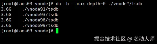 在测试一的基础上,查看 3 台数据库节点实际文件大小,如下:
