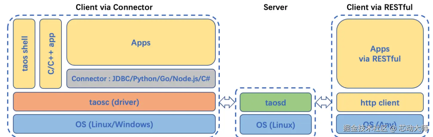使用客户端驱动提供的原生接口直接与服务端建立的连接的方式下文中称为“原生连接”;使用 taosAdapter 提供的 REST 接口或 WebSocket 接口与服务端建立的连接的方式下文中称为“REST 连接”或“WebSocket 连接”。