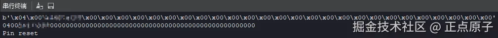从“串行终端”的窗口中可以看到,前两行输出的是Kendryte K210的唯一ID,值得一提的是,虽然打印输出了64字节的唯一ID,但有效的只有前32字节。可以看到第三行,输出的是“Pin reset”,说明本次运行前的复位原因是“引脚复位”。