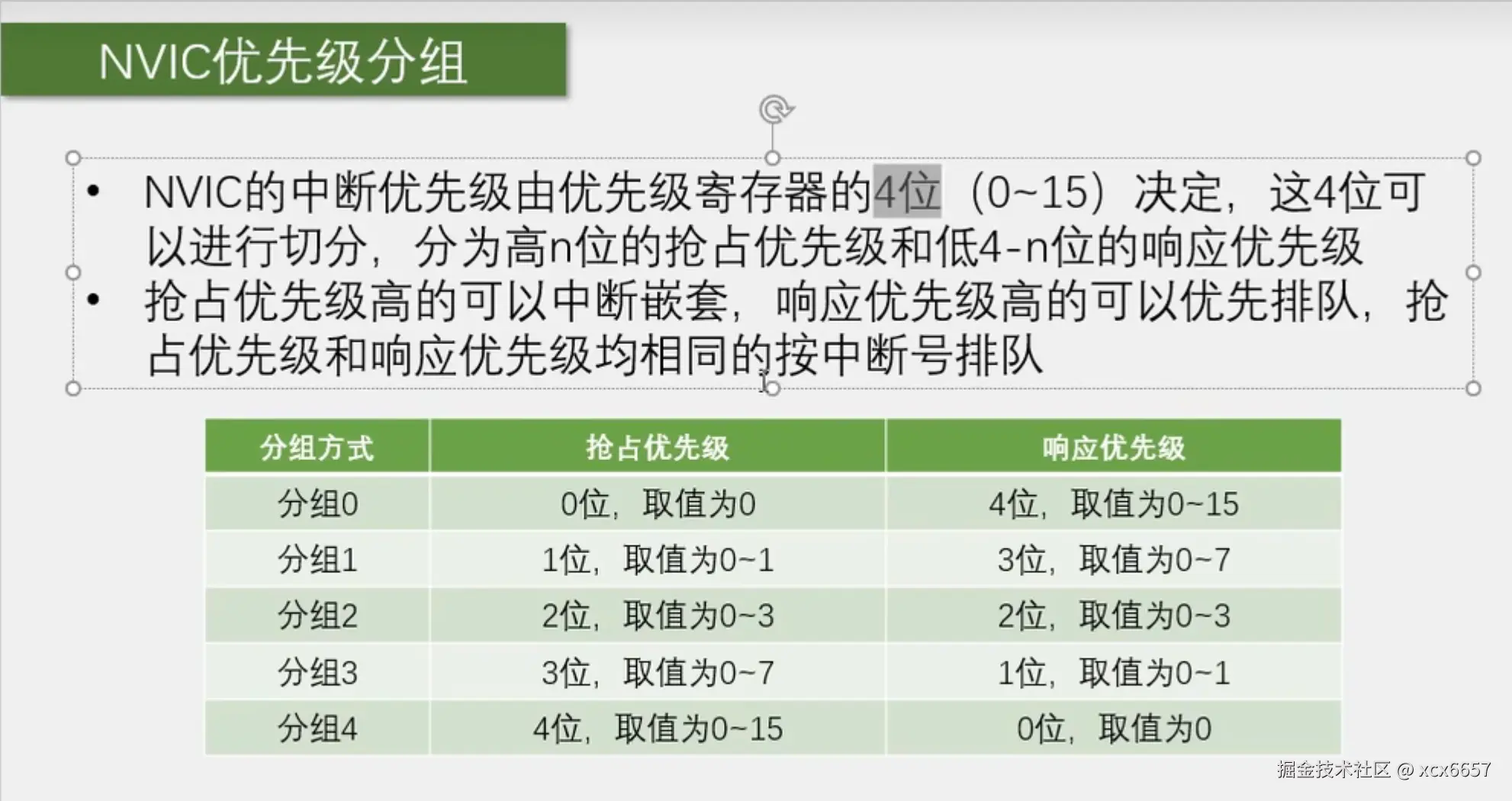 抢占优先级(先占优先级):决定了中断是否可以打断其他中断。高抢占优先级的中断可以中断低抢占优先级的中断。位数越低,优先级越高