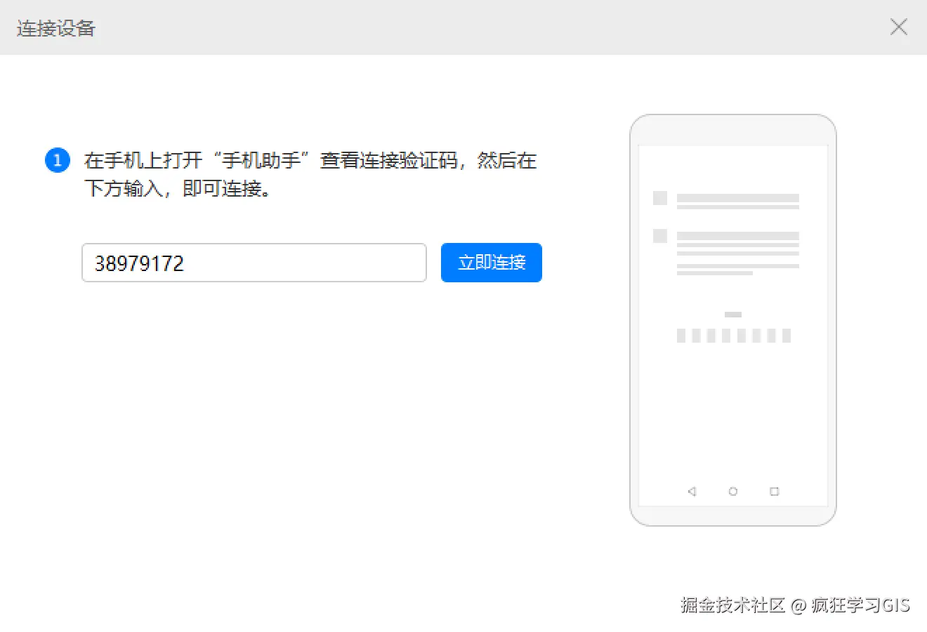 随后,手机上将自动安装“手机助手”。安装完毕后,通过手机端上的验证码,即可实现手机与电脑的数据互通。