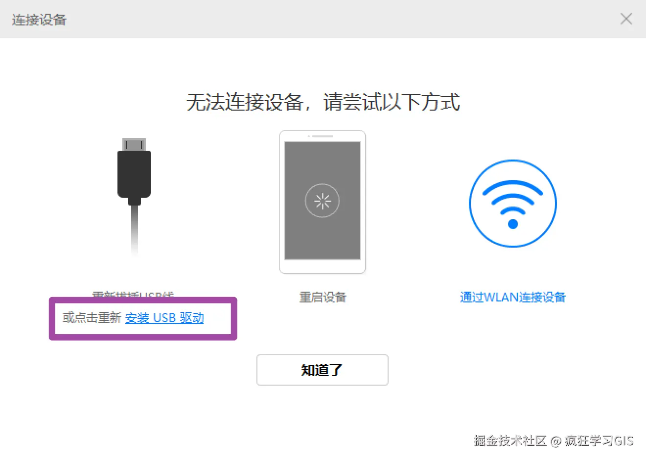 完成上述操作后,将手机重新通过USB线与电脑连接,如果问题解决,那么就大功告成。