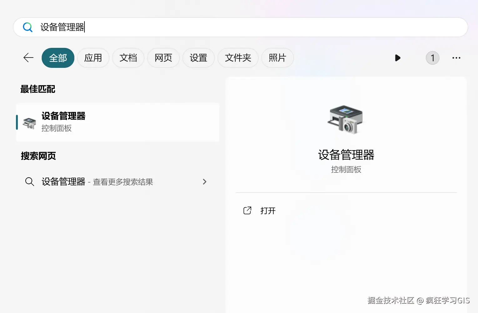 此外,我们还可以在开始菜单中输入设备管理器,并进入设备管理器界面;如下图所示。