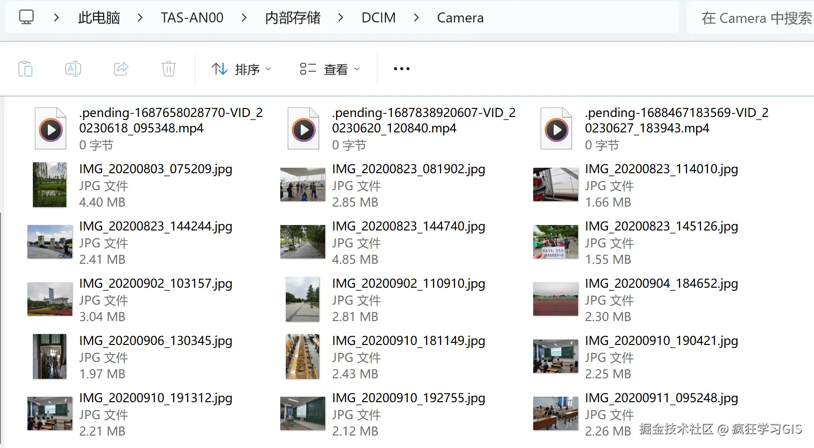 通过资源管理器访问手机的话,就不太好对联系人、信息等内容加以访问了;而且通过这种方法访问手机中的照片,如果照片数量比较多的话,其文件加载速度还非常慢。我试了一下,通过资源管理器进入手机的相册文件夹后,其中的照片文件都是一批一批加载的;也不知道它是按照什么顺序加载的——如下图所示,在2020年08月到09月这个时间段内,我实际的照片数量非常多的;但是通过资源管理器进入相册文件后,初始状态下这个时间段内的照片只有如下的一部分,剩下的都还没加载出来。