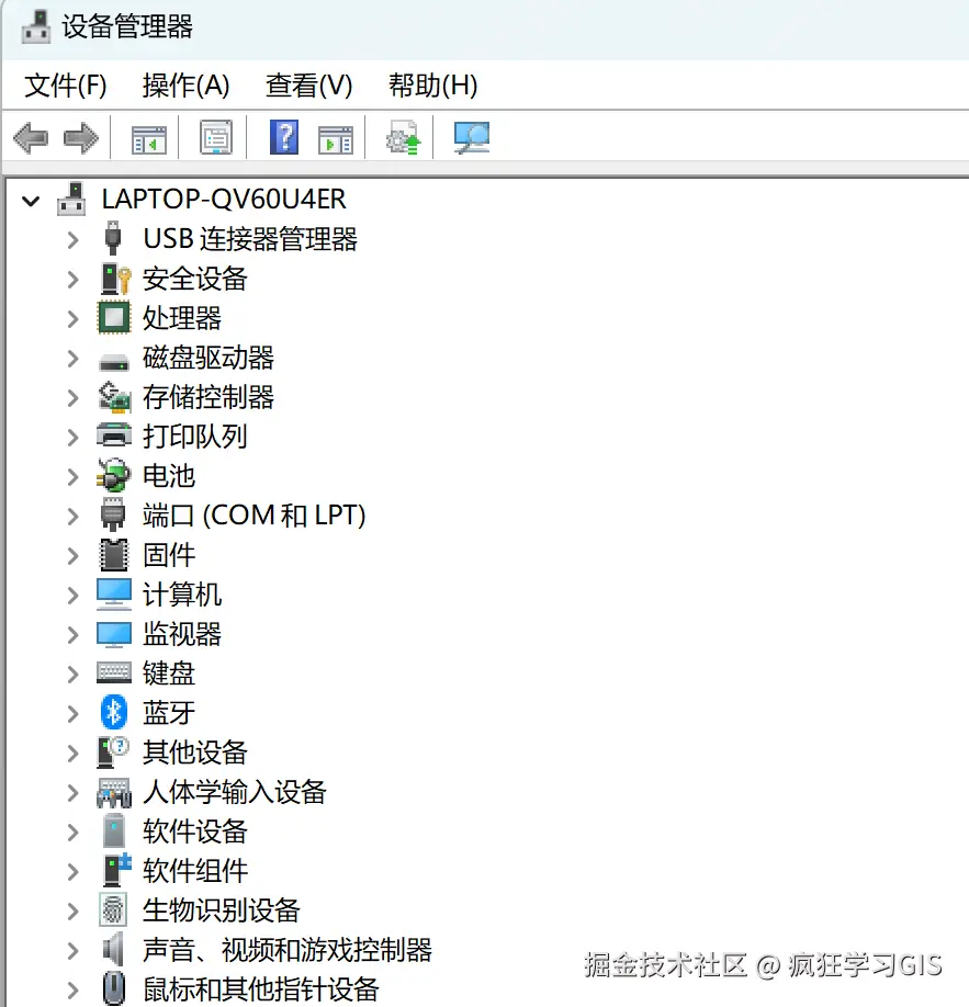 如果在其中,我们看不到任何带有ADB或HDB字样的内容,那么就可以确定是驱动导致的问题。如下图所示,我这里就没有任何带有上述2个字样的设备。