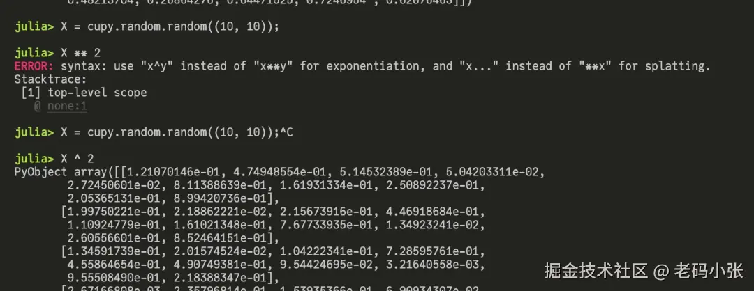 最让我喜欢CuPy的一点就是:如果你熟悉NumPy,基本上就能无缝切换到CuPy。它的API几乎完全和NumPy一样,这意味着你不需要重新学习新的函数,也不需要大规模修改你现有的代码。只要简单地把import numpy as np换成import cupy as cp,然后把np改成cp,你的代码就能直接在GPU上运行了。