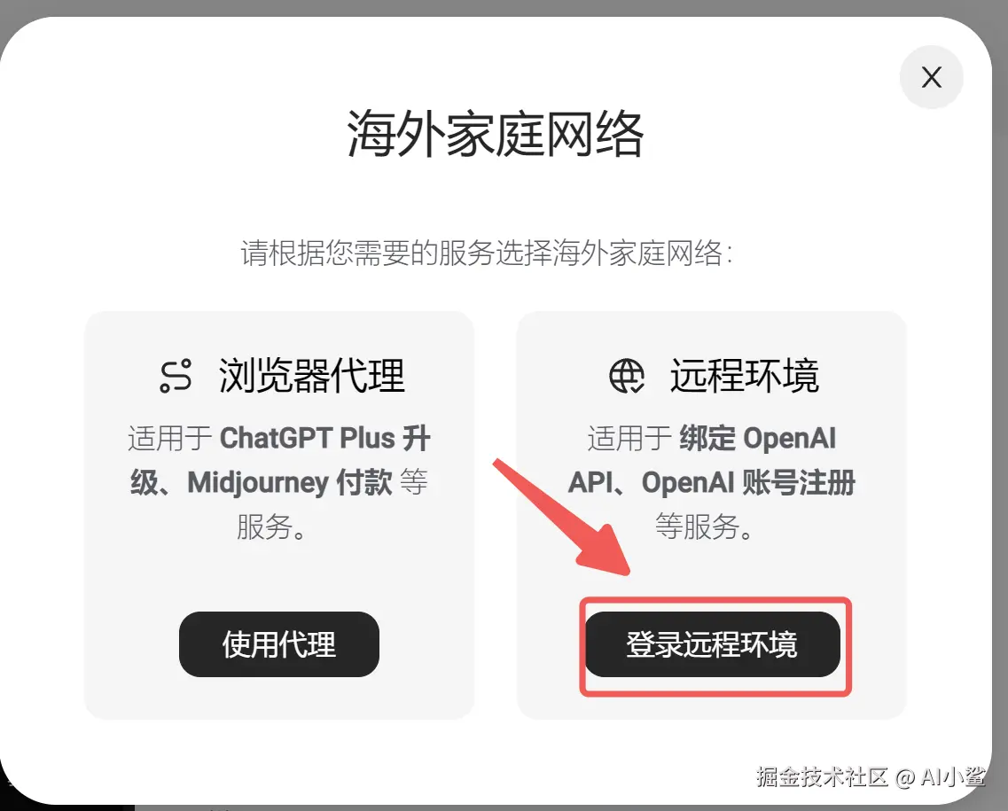 在登录后的「我的卡」页面,找到「远程环境」的入口,点击「登录远程环境」: