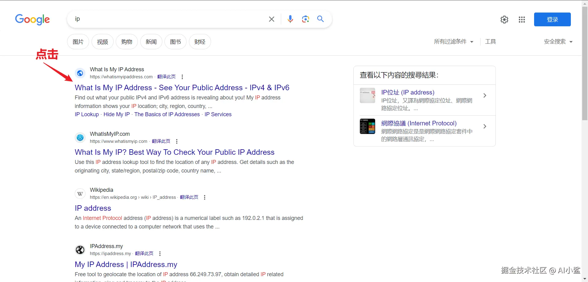 直接输入搜索 ip 这两个字符。