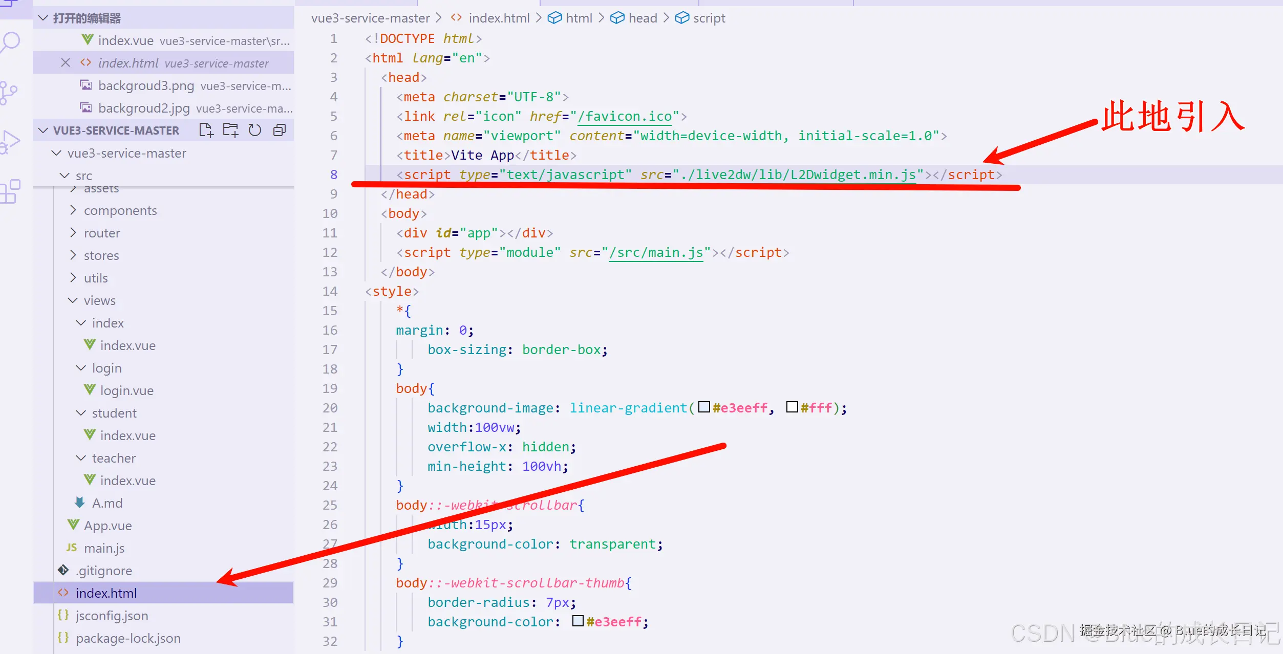 第三步:在index.html文件中引入js