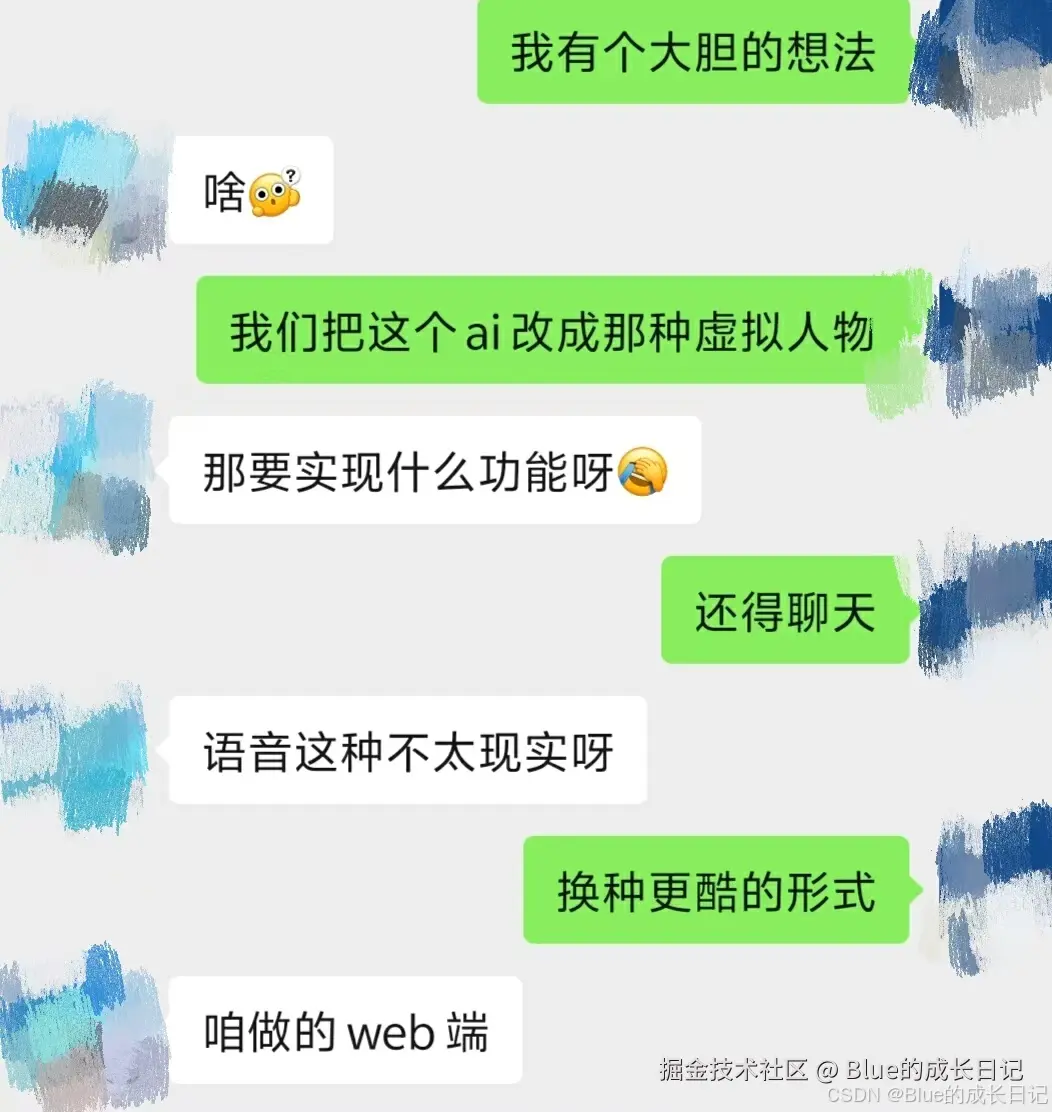 故事的开头是这样的,因为有一个模块是做类似文心一言那样的界面,但是我感觉这样有点太单调了,突发奇想就有了这样的对话(如下图)。