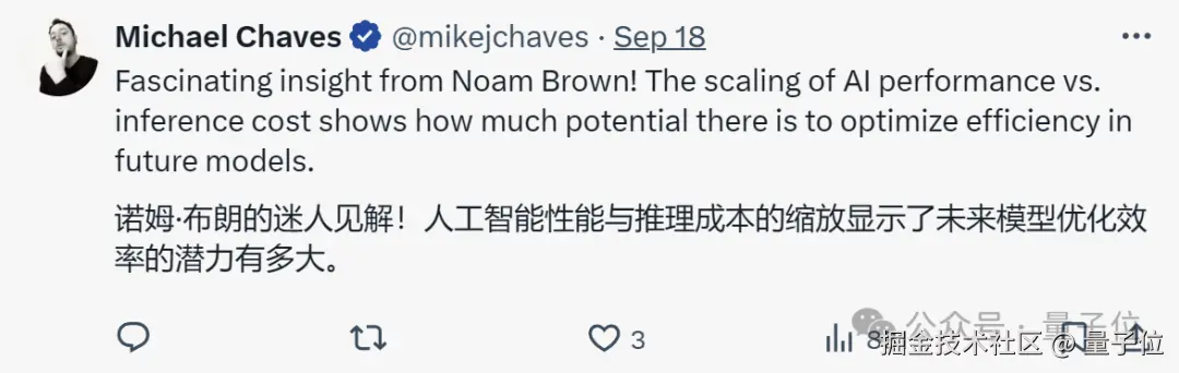 除了上述,o1 另一核心作者 Noam Brown 也分享了一个观点: