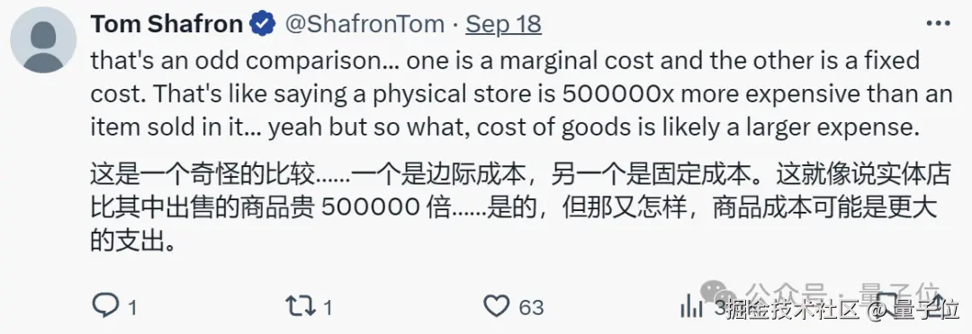 这是一个奇怪的比较。一个是边际成本,另一个是固定成本。这就像说实体店比其中出售的商品贵 500000 倍