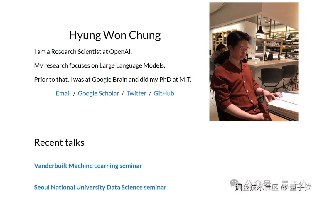加入 OpenAI 之前,他在 Google Brain 负责大语言模型的预训练、指令微调、推理、多语言、训练基础设施等。