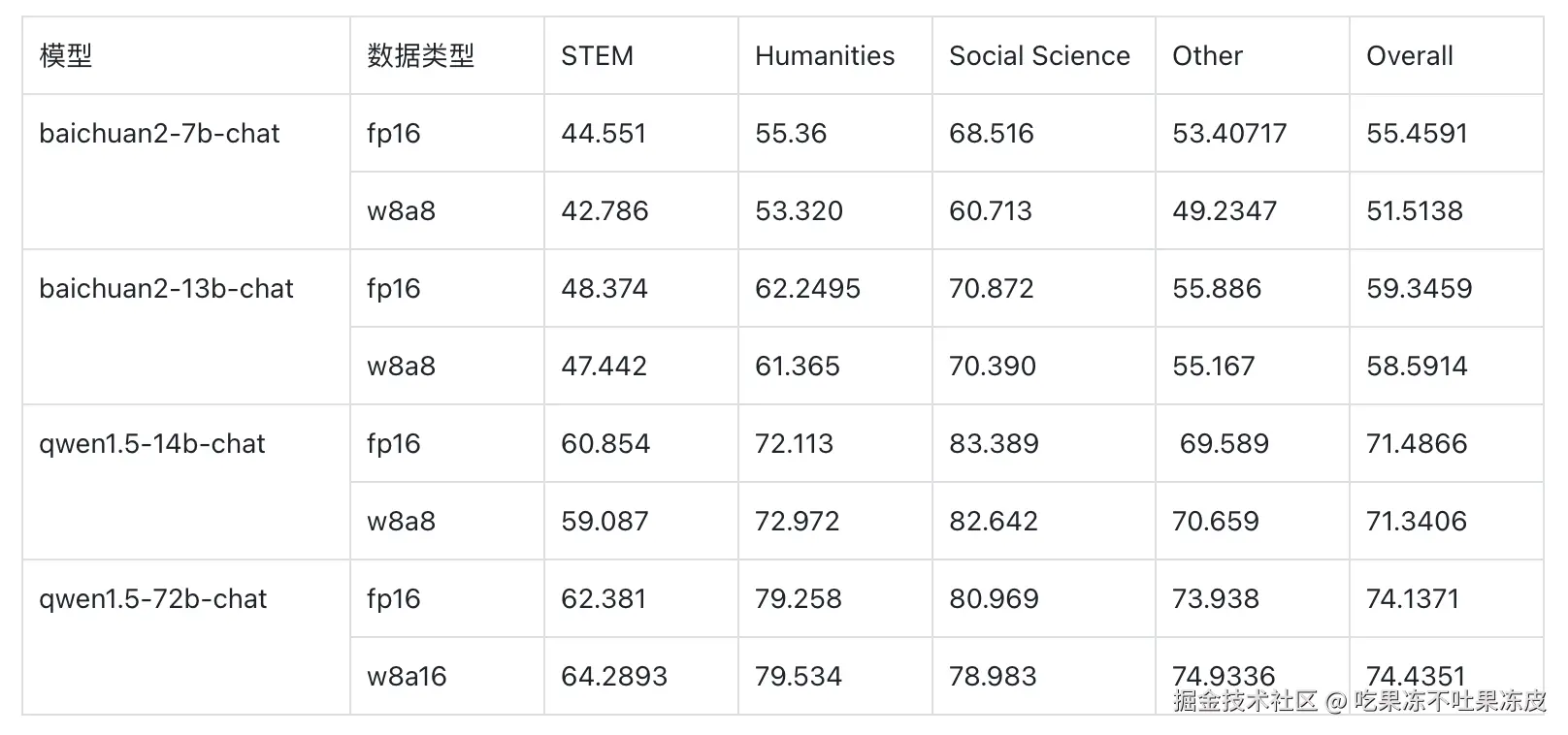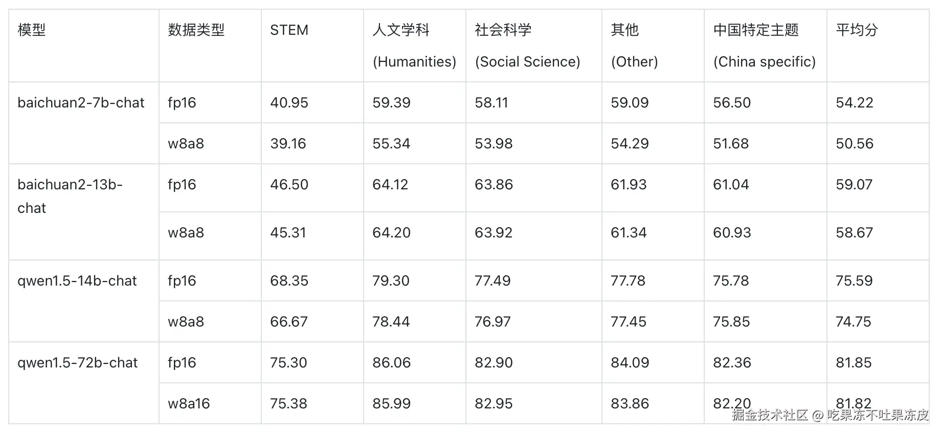 对 baichuan2 和 qwen1.5 进行量化和使用 MindIE Service 进行服务化之后。在 C-Eval 和 CMMLU 进行效果测评,具体如下表所示。
