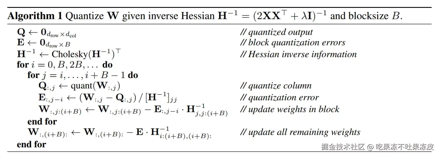 GPTQ的伪代码如下所示。