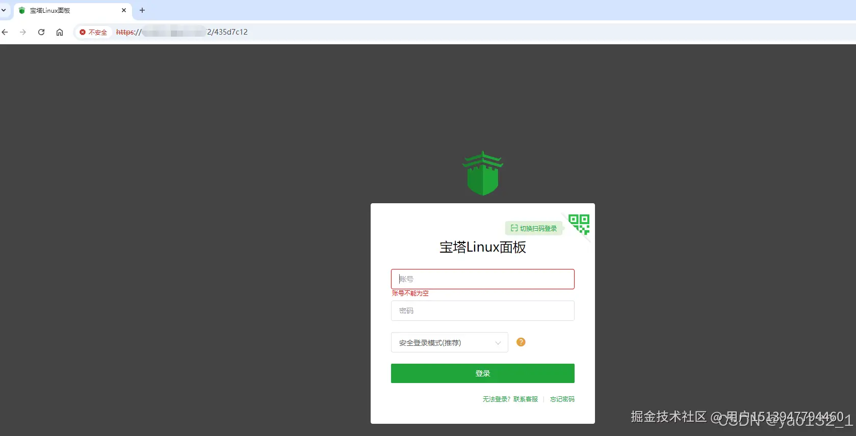 通过ZeroNews 域名访问宝塔面板,浏览器中输入分配给宝塔面板的域名地址,域名后面需要加宝塔面板的路由地址,在安装宝塔面板的时候会显示
