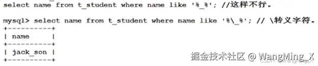 - 下划线:任意一个字符。