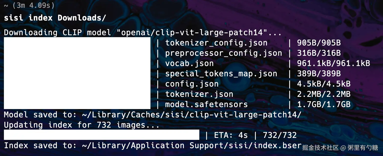 首次检索需要下载模型文件。