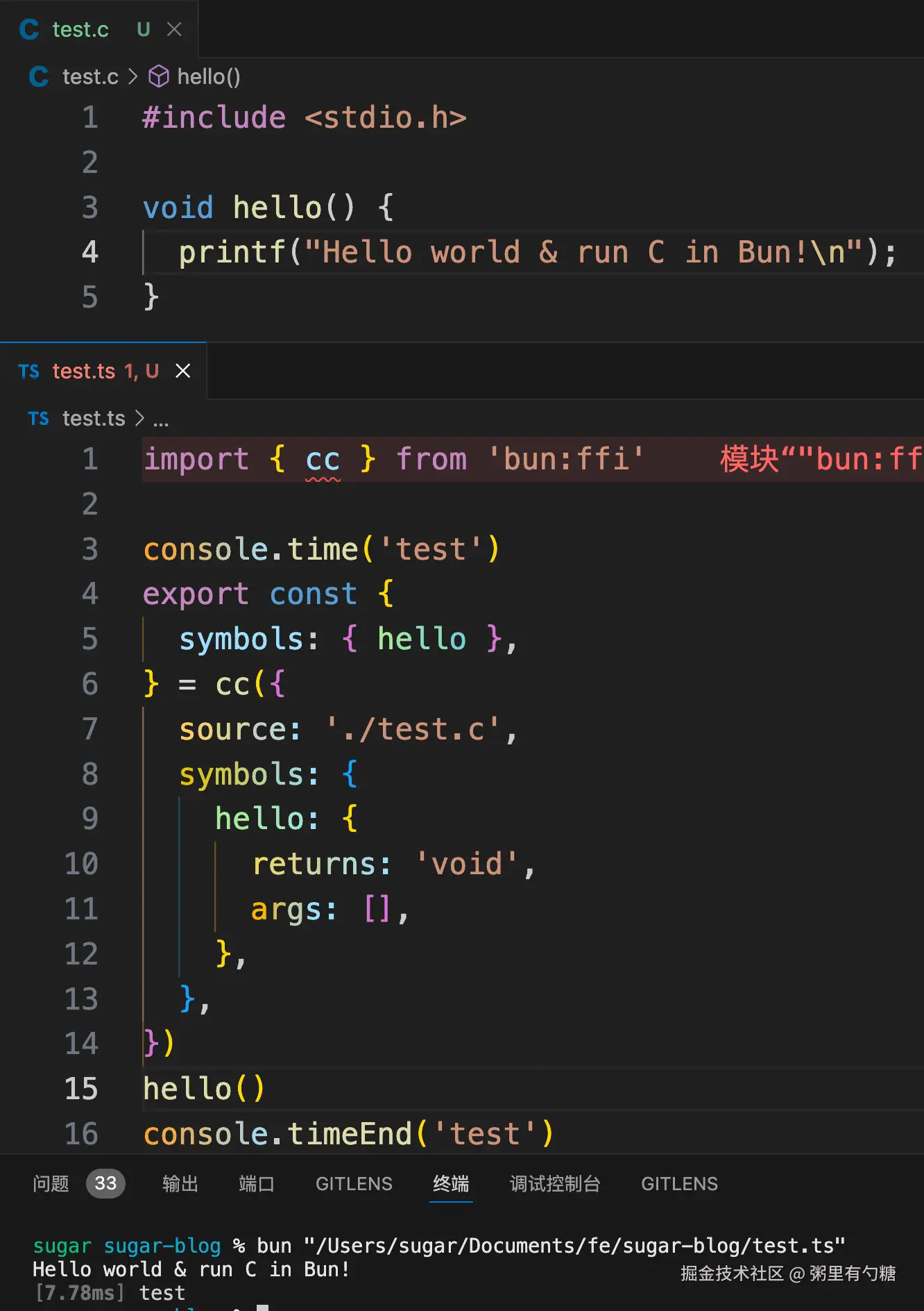1. Bun 现在允许直接在js中直接编译运行 C !