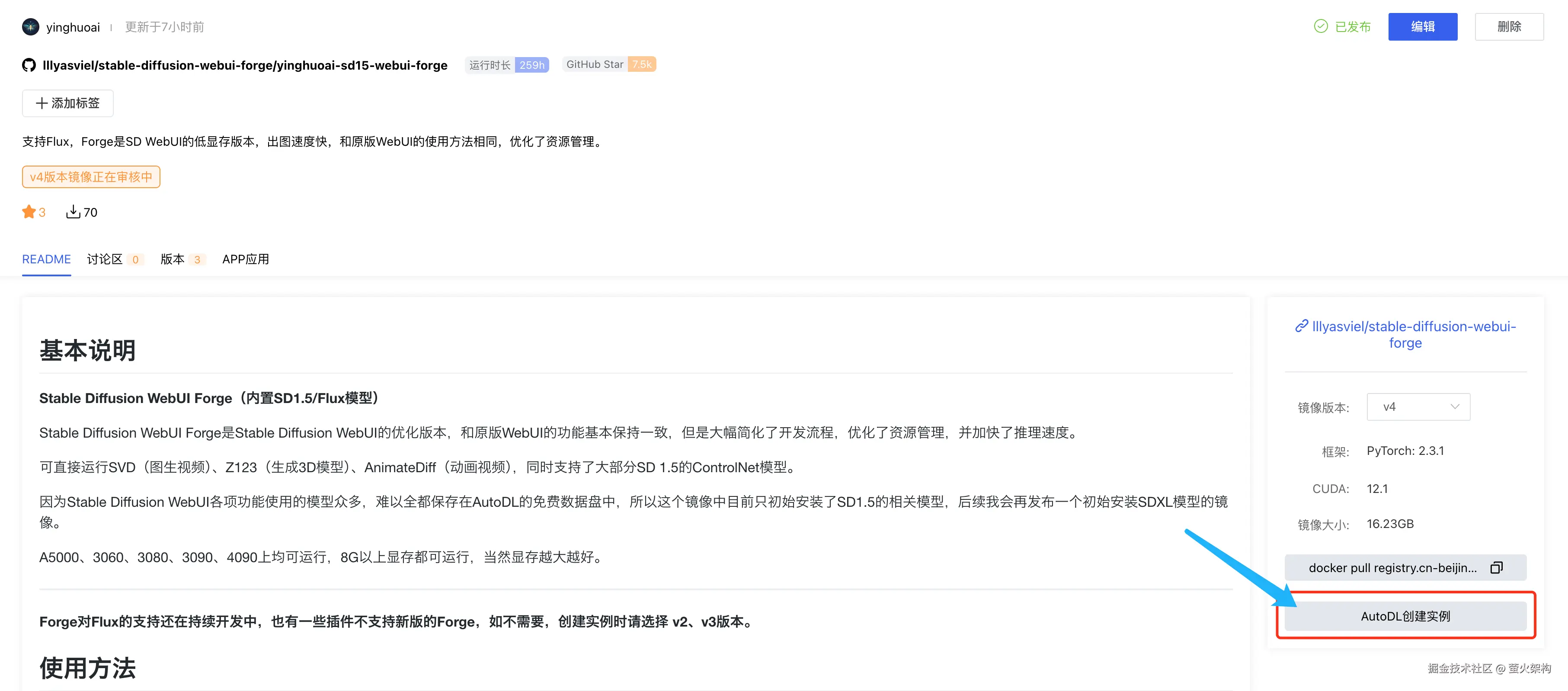 我在 AutoDL 的 SD WebUI Forge 镜像已经升级到最新版本,一键启动,即可快速体验Flux生成图片。