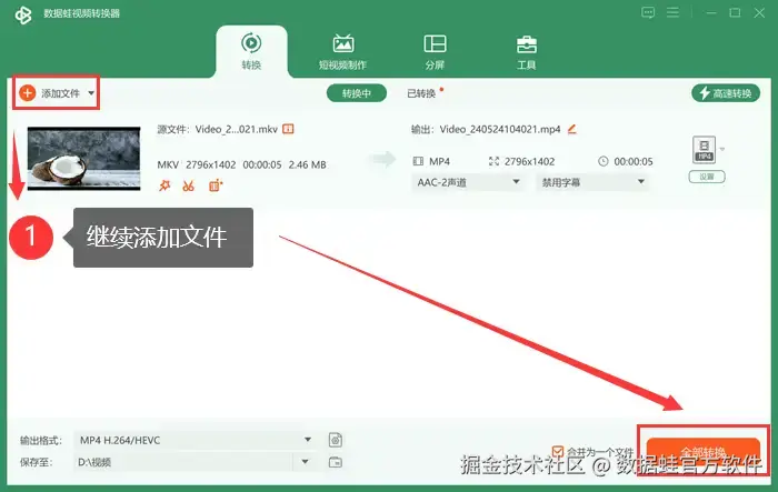 数据 蛙视频转换器是一款功能全面的格式转换软件,它专为视频格式转换而设计,支持包括mkv和mp4在内的多种视频格式。mkv to mp4怎么弄?软件就用数据 蛙!它以其高效的转换速度、用户友好的界面和丰富的功能而受到用户的青睐。