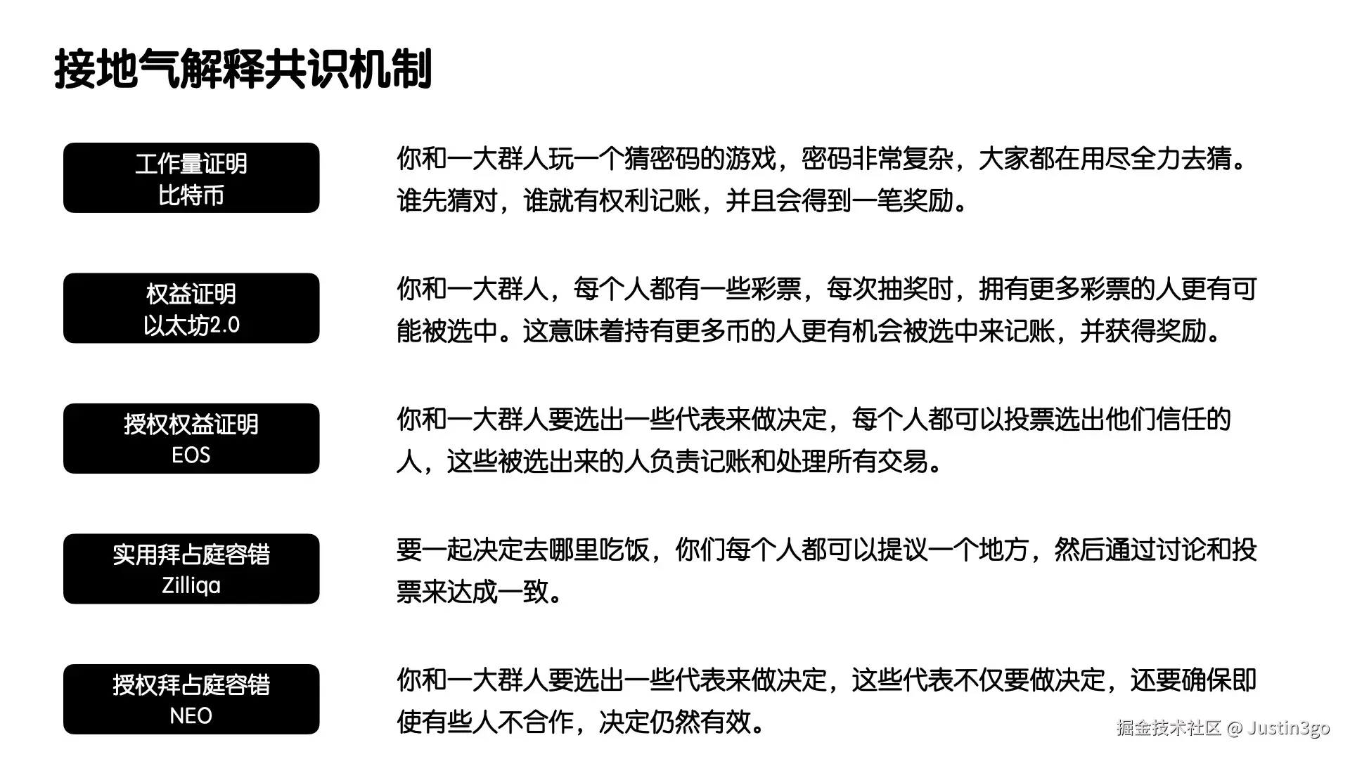 其中关于区块链相关专业术语的接地气解释我的印象挺深刻的: