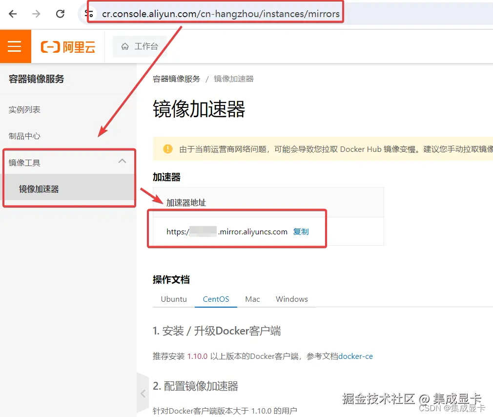 替换<your_accelerator>为您的加速器地址,可以从阿里云控制台获取。