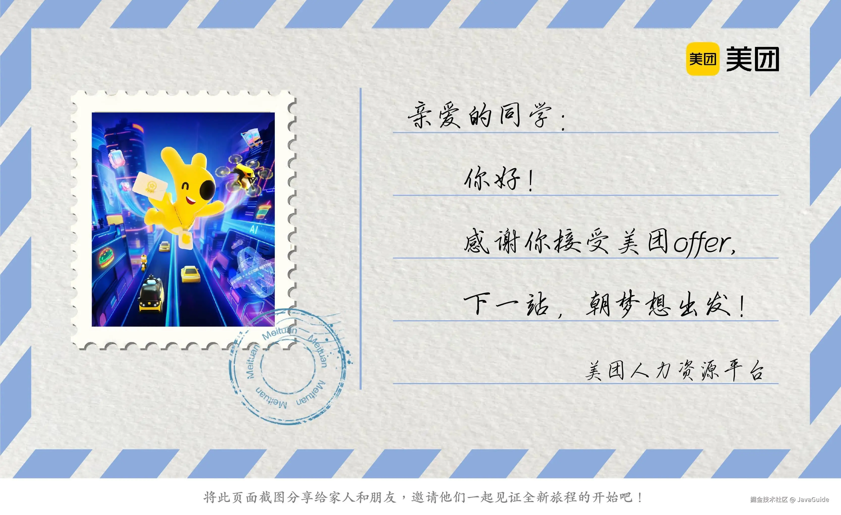 运气真的是爆棚了!说实话,我并不是觉得自己的技术有多强,真没想到能在差不多一周的时间内“速通”美团。每一轮面试结束时,我都觉得自己可能没戏了,但没过多久又收到了下一轮的邀请。甚至到现在,我仍然觉得,这个 offer 除了运气,真的没有更合理的解释。