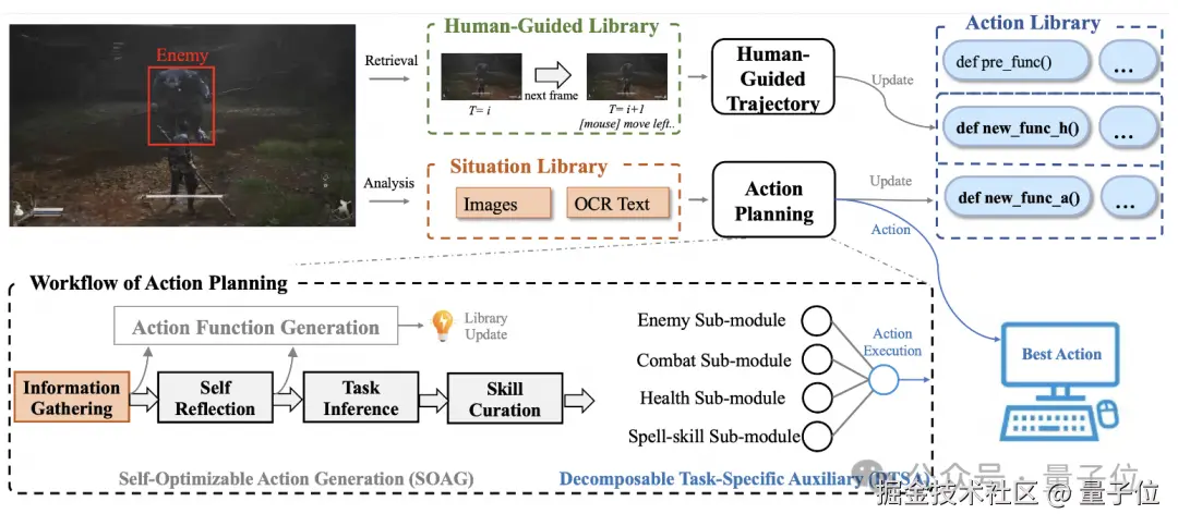 SOAG 会在玩家角色与敌人的每次战斗互动后总结第四行和第五行中的新动作,并将其存储在动作库中。