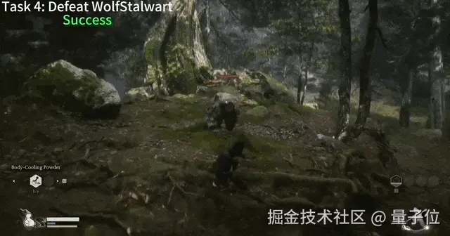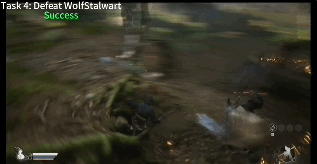 以玩《黑神话 · 悟空》为例,该智能体在 90% 简单和中等水平战斗场景中取胜。