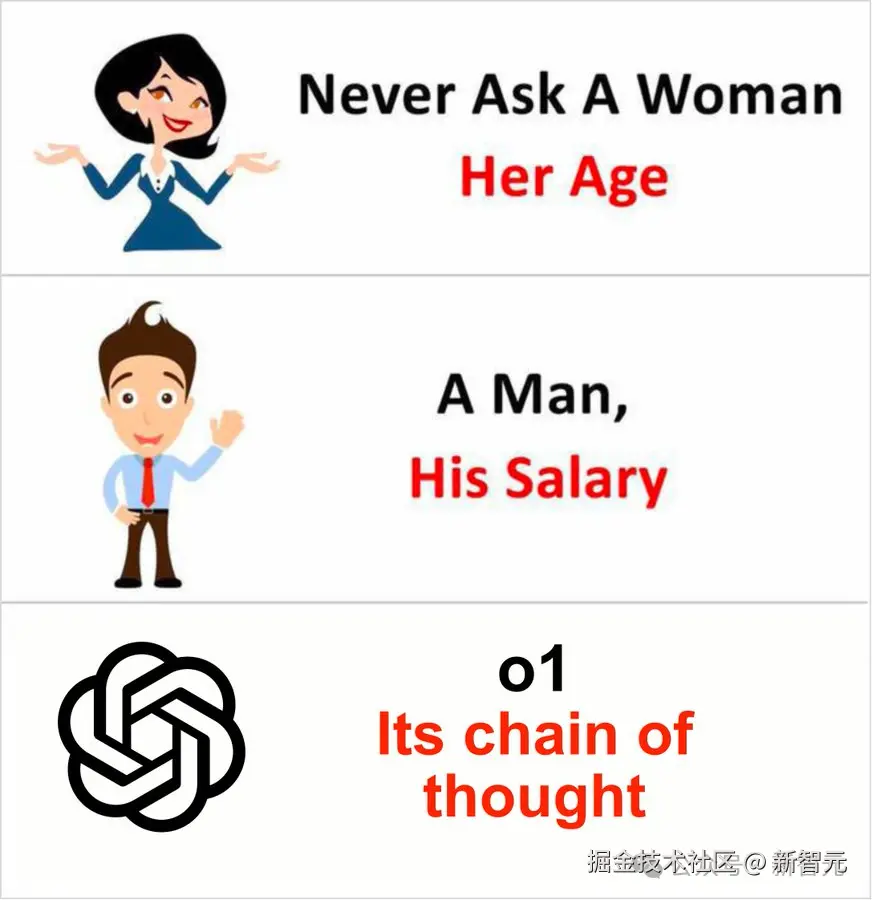 最近流行热梗:永远不要问女生的年龄、男生的薪资,以及 o1 的 CoT