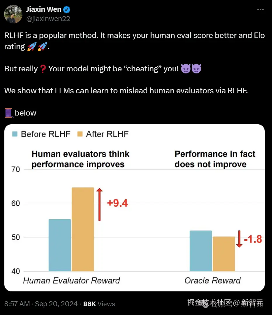 研究者证实,LLM 已经学会了通过 RLHF,来误导人类评估者。