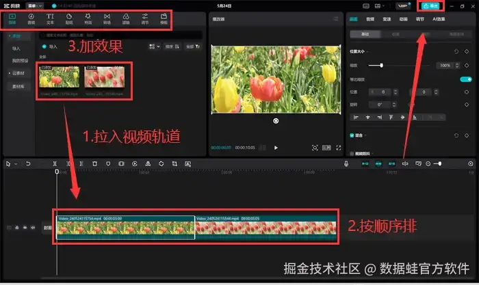 怎么把多个mp4视频合成一个?有没有什么无需下载剪辑软件,运行稳定的软件呢?当然有!我们可以选择使用数据 蛙视频转换器来进行视频合并。与PickFrom相比,数据 蛙不依赖于网络状况,隐私性强,不泄露用户的信息。与剪映相比,数据 蛙导出速度快,提升了用户的使用体验。
