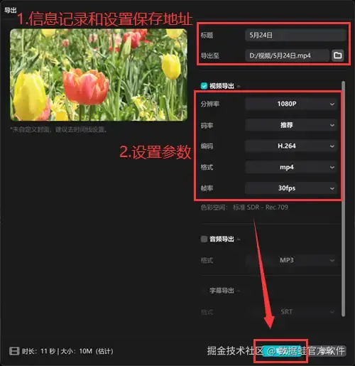 第三步: 点击 【导出】 ,选择导出的分辨率、帧率等参数,等待视频导出完成即可。