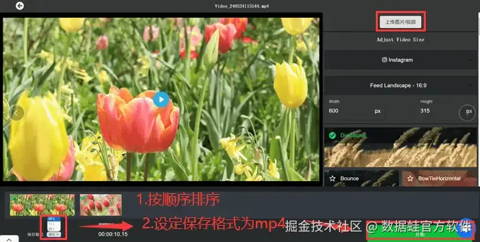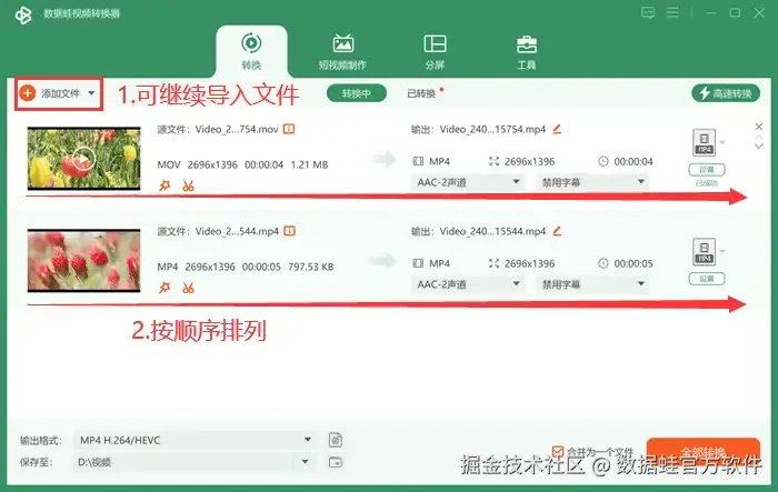 第一步: 打开数据 蛙视频转换器后,按顺序导入需要合并的mp4文件。