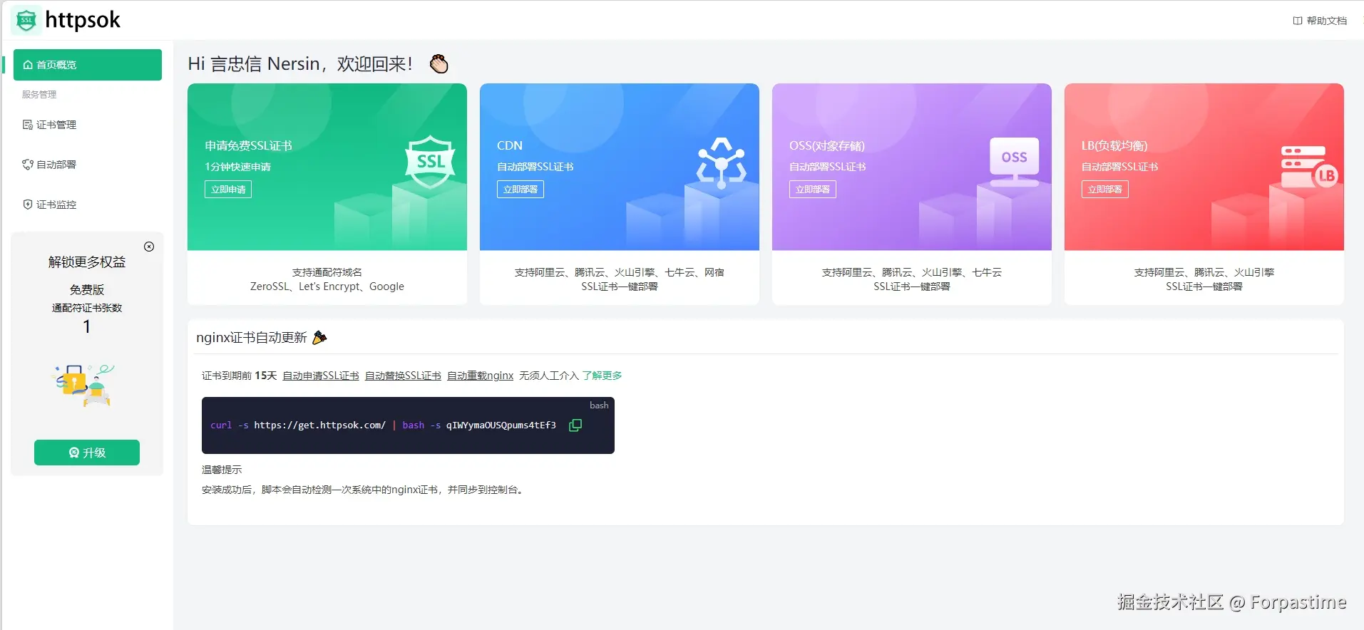 httpsok,安装方便,域名统一管理,证书过期自动续期,简直太香啦!