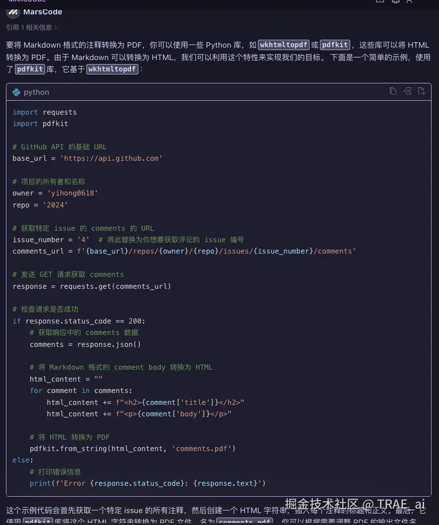 豆包 MarsCode 不仅支持免费使用而且速度快,能顺利帮助我实现需求的开发,还是很开心的!