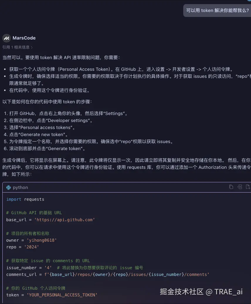 我引导他可以用 token 试试后,顺利解决了,还不错。