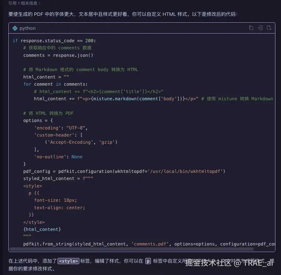 OK 下一步是有难度的,我需要让他生成 pdf ,不知道我写简单的 prompt 能不能做得到 :