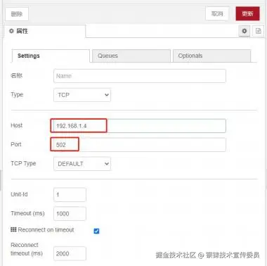 导入文件成功后,双击图中节点,执行以下操作,配置从机 IP 地址以及端口号。