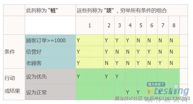 这样,我们就可以得到更清晰的逻辑判断,也可以更好的协助我们编写测试用例。而决策表,对于开发人员来说一样有用。