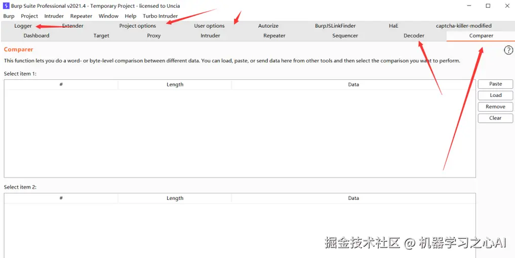 除此之外,Burp Suite还包括许多其他的有用工具Comparer(用于比较不同版本的请求和响应)等。